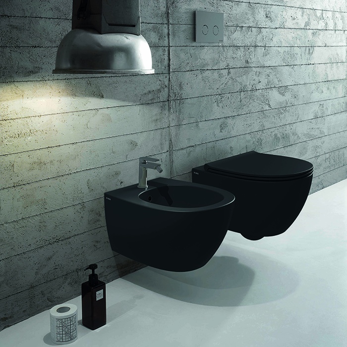 Подвесной унитаз Globo 4ALL артикул MDS03AR цвет AR - черный матовый, крышка-сиденье в комплект не входит, глубина 54 см