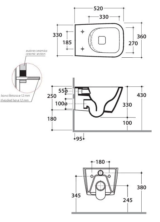 Подвесной унитаз Globo Stone безободковый STS05BI