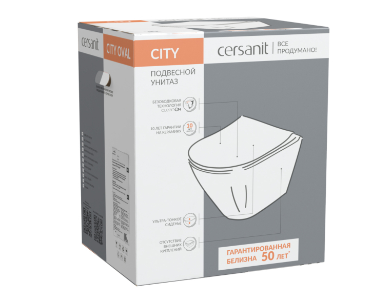 Подвесной унитаз Cersanit City OVAL DPL EO с микролифтом, безободковый 63558