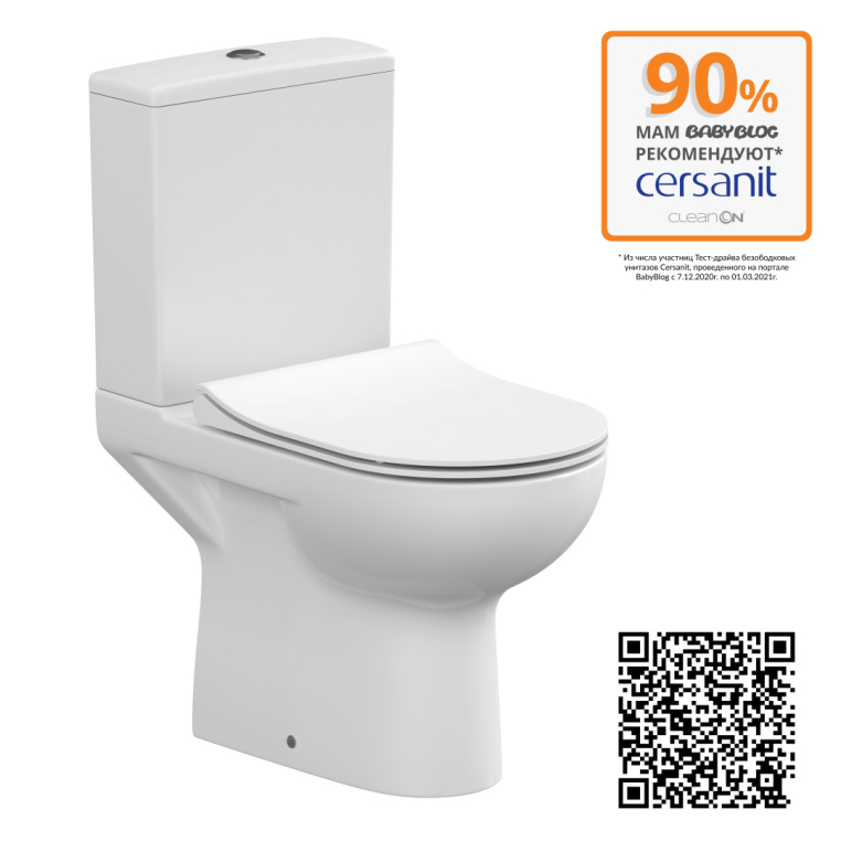 Унитаз-компакт Cersanit Street fusion NEW CLEAN ON 011 3/5, с кр.дюропл. slim, lifting, Сорт1 фарфор прямоугольная (S-KO-SFU011-3/5-COn-S-DL-w)