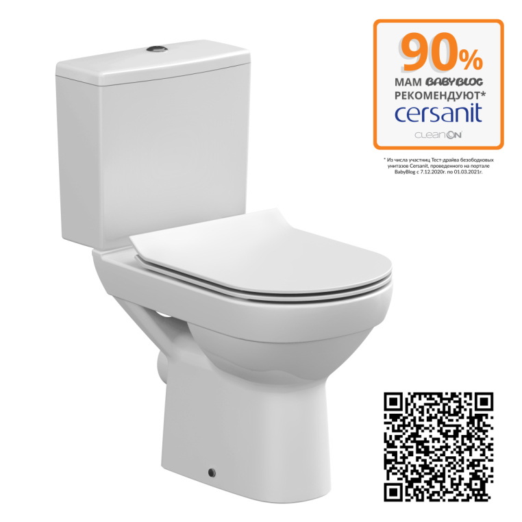 Унитаз-компакт Cersanit City NEW CLEAN ON 011 3/5, дюр.slim, lift, e-off, белый, Сорт1 фарфор овальная (S-KO-CIT011-3/5-COn-S-DL-w)
