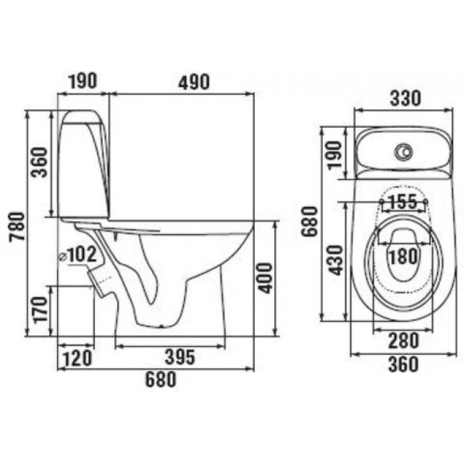 Размер: 68х78х36см. Унитаз напольный Vega.
