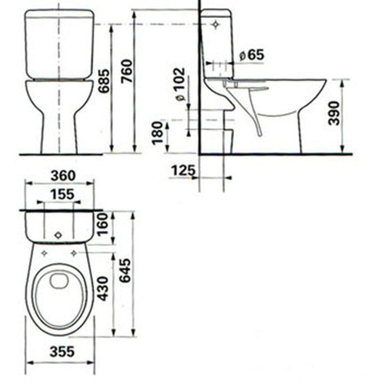 Размер: 65х36х76см. Напольный унитаз с бачком.