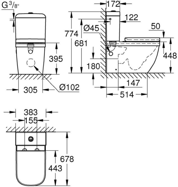 Напольный унитаз Grohe Euro Ceramic с бачком и микролифтом, безободковый 39462000