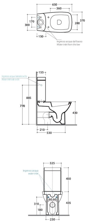 Унитаз напольный (чаша) Globo DA003BI DAILY для установки с бачком, размер 65 см, выпуск в стену, крепеж в комплекте, цвет белый.