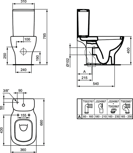 Напольный унитаз Ideal Standard Tesi с бачком, безободковый T008701+T356801