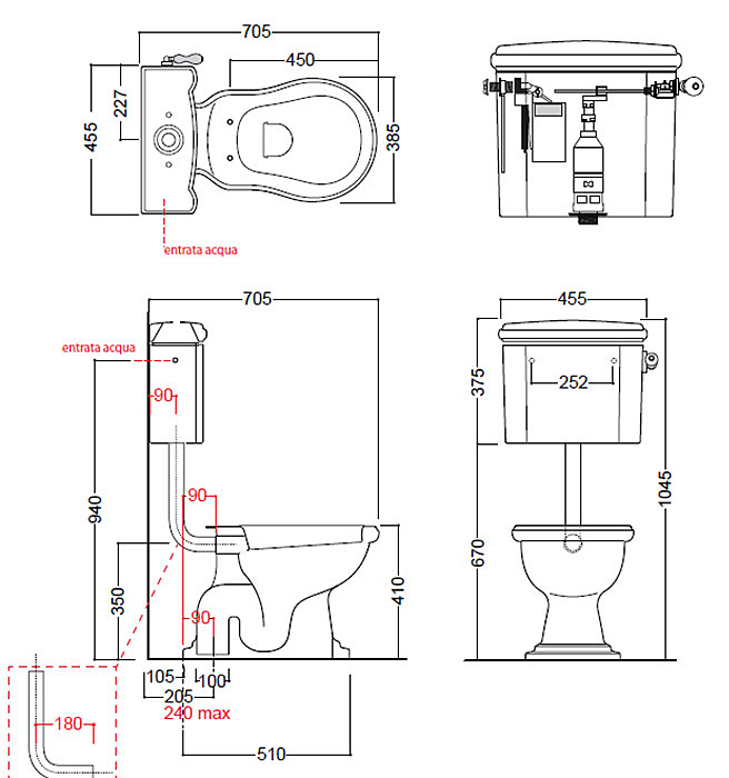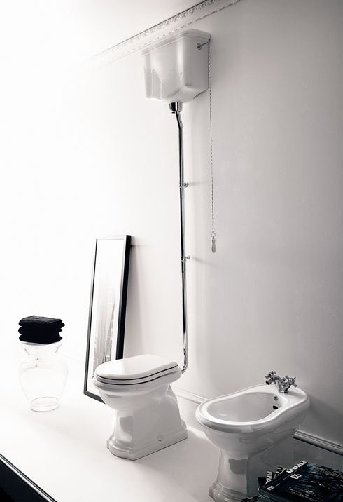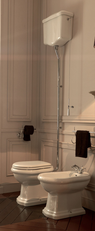 Унитаз Kerasan Retro 72х38.5см., с высоким бачком, слив в пол, белый/бронза