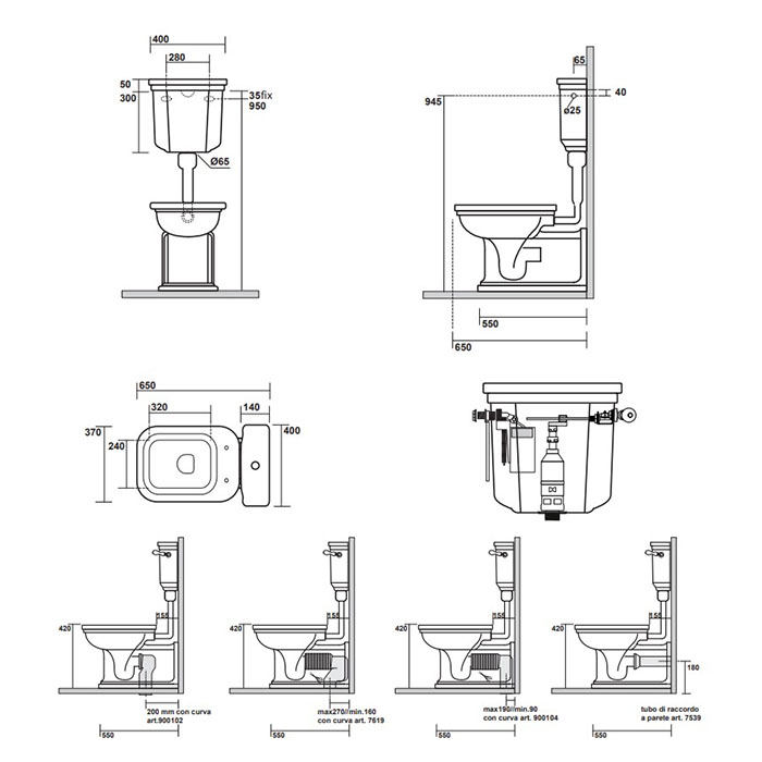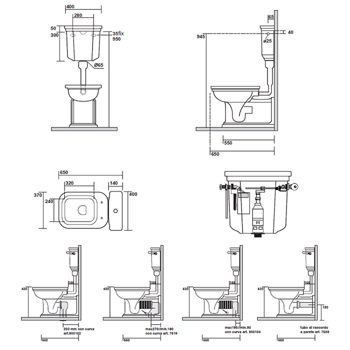 Бачок для унитаза Kerasan Waldorf, с боковым отверстием для ручки механизма, для монтажа с низкой трубой (без трубы и механизма слива), цвет белый 418300