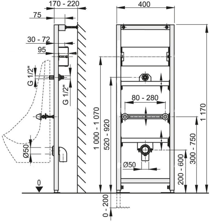 Система инсталляции для писсуара и сенсорного устройства AlcaPlast A107S/1200