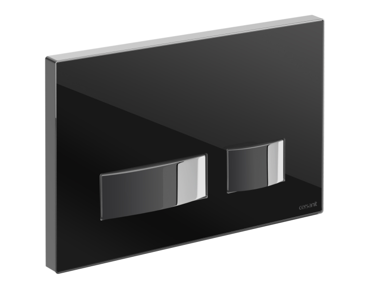 Кнопка смыва Cersanit Movi стекло, черный глянцевый, универсальная, с монтажной рамкой, Сорт1 (P-BU-MOV/Blg/Gl)