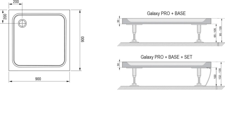 Размер: 900х900х30мм. Квадратный душевой поддон Perseus Pro Chrome.