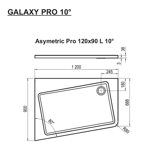 Поддон для душа Asymetric Pro 10°