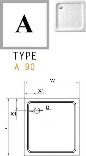 Поддон акриловый, квадратный Cezares 85x85 TRAY-A-A-85-15-W. Размеры, мм: 850х850х150.