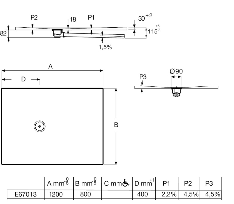 ультратонкий душевой поддон из материала Neoroc - измельченного доломитового мрамора и смолы, верхний слой - высокопрочное гелевое покрытие