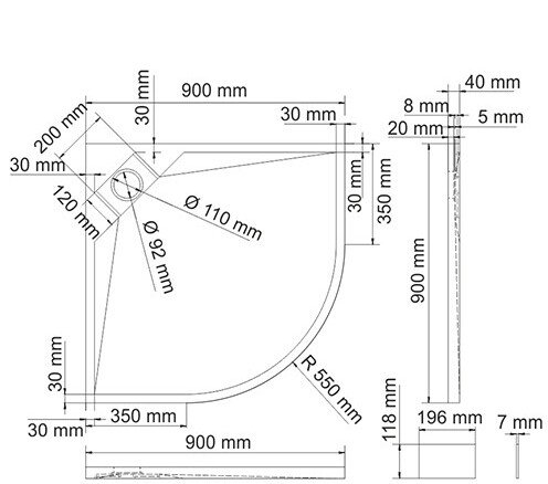 Душевой поддон 15T01 сочетается с Душевыми уголками: 35P01, 41S01