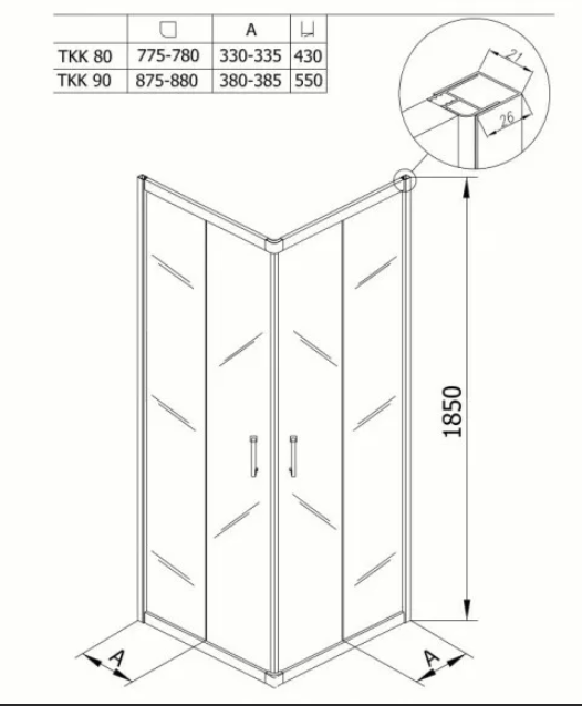 Душевой уголок изготовлен из алюминиевого профиля и закаленного стекла толщиной 5 мм, надежная система роликов с функцией быстрого отщелкивания нижней части створки для удобство уборки.
