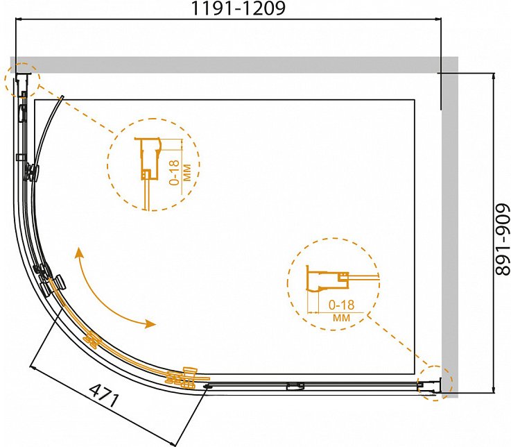 Регулировка ширины: предусмотрена за счет боковых профилей