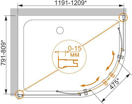 Регулировка ширины: предусмотрена за счет боковых профилей