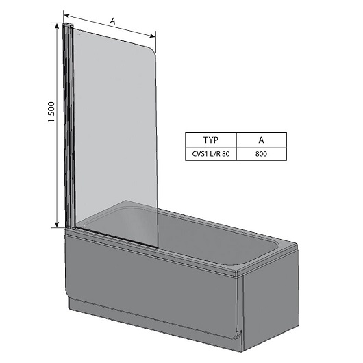 Шторка Ravak CVS1 предназначена для установки с ваннами. Модель состоит из одной неподвижной части, поворачивающейся как внутрь ванны, так и к наружу. Витраж выполнен из безопасного стекла и покрыт слоем AntiCalc® для защиты поверхности от минеральных разводов.
