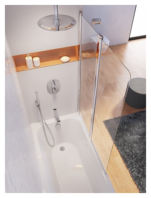 Шторка подходит для прямоугольных ванн RAVAK City, Formy 01, Formy 02, 10°, Classic, Campanula II, Vanda II, Chrome, Domino или для любой классической прямоугольной ванны с ровным передним бортом.