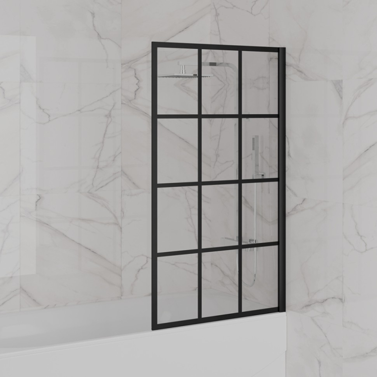 Надоели постоянно мокрые и мятые шторки для ванной и лужи на полу? Тогда стеклянная шторка для ванной от PAINI – то, что нужно! Пристенный профиль из анодированного алюминия надежно удерживает закаленное стекло с рисунком в виде решетки черного цвета. Такая конструкция защищает пол рядом с ванной от луж и брызг. Лаконичный дизайн, современные материалы, а также простота в уходе и безопасность – все это делает ширмы PAINI оптимальным решением, заменяющим тканевые и полиэтиленовые шторки для ванны.