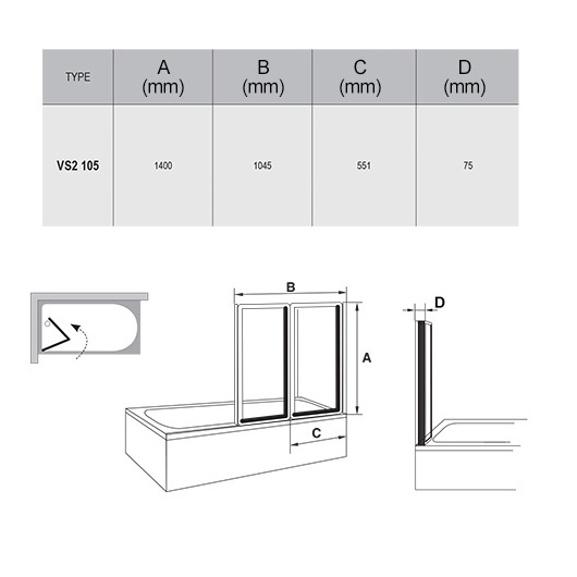 Шторка Ravak VS2 предназначена для установки с ваннами. Модель состоит из двух подвижных частей, которые складываются вовнутрь ванны. Перевернув изделие на 180°, получится левый или правый варианты установки. Шторка отличается простым монтажом и можно устанавливать уже в готовую ванную комнату. Витражи выполнены из безопасного стекла Transparent и покрыты слоем AntiCalc® для защиты поверхности от минеральных разводов.