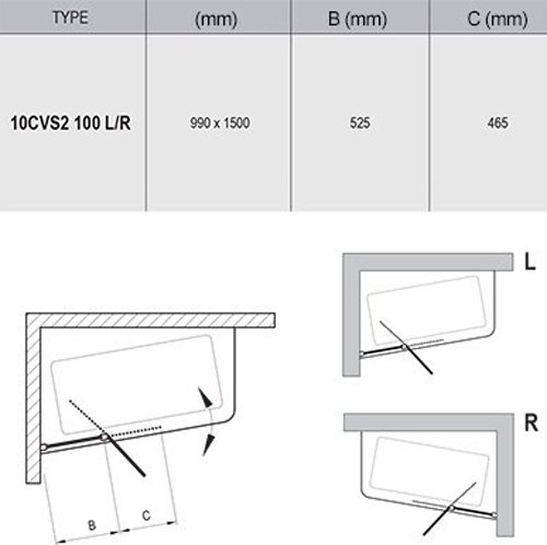 Шторка для ванны Ravak 10° 10CVS2-100 L (блестящий + транспарент) 7QLA0C03Z1