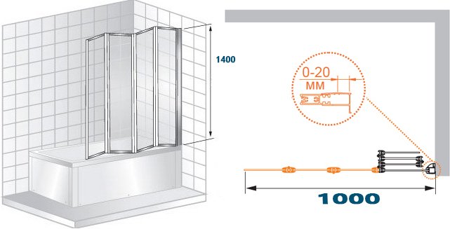 Душевая шторка на ванну Cezares PRATICO-V-4-100/140-P-Cr-R