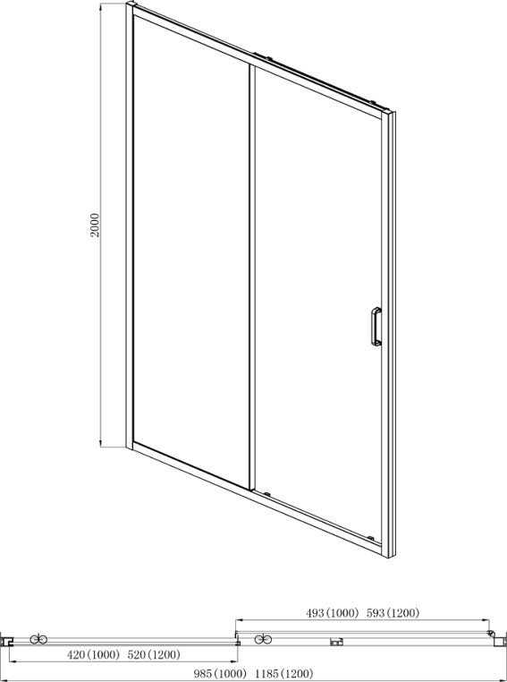 Душевая дверь Aquatek AQ ARI RA 12020BL двухэлементная, раздвижная 1200x2000 профиль черный, стекло прозрачное