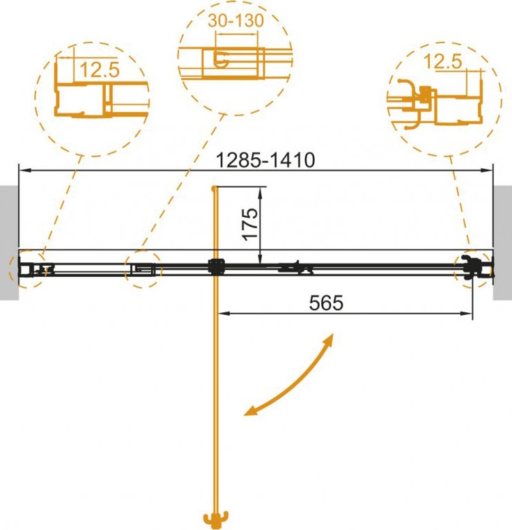 ОБРАТИТЕ ВНИМАНИЕ: конструкция петли позволяет регулировать ширину входа душевого ограждения в диапазоне 10 см.