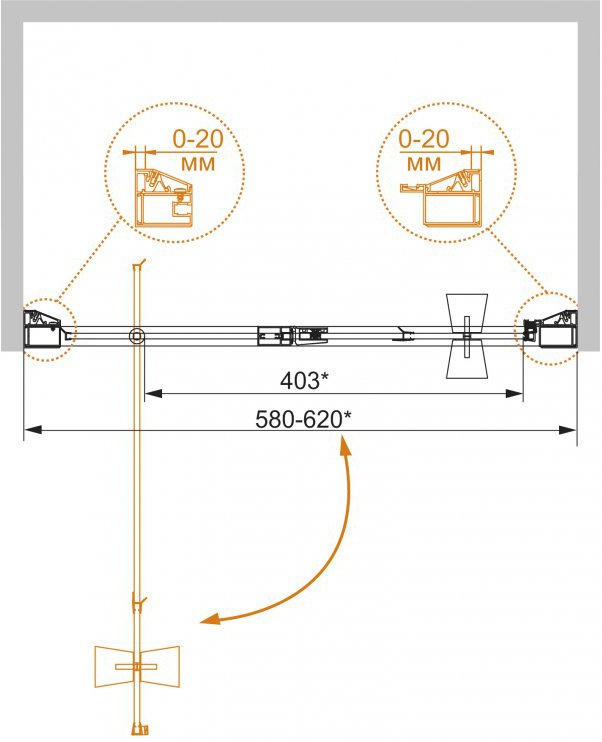 Регулировка ширины: предусмотрена за счет боковых профилей