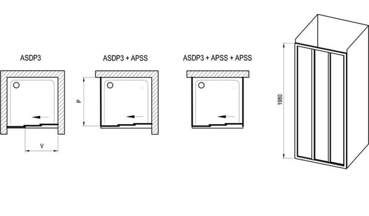Изделие состоит из одной неподвижной и двух подвижных частей. Перевернув изделие на 180°, получите левый/правый варианты входа. Устанавливается в облицованный кафелем угол ванной комнаты на поддоны RAVAK ANETA, ANGELA, PERSEUS, PERSEUS PRO, PERSEUS PRO FLAT, PERSEUS PRO CHROME, GIGANT PRO, GIGANT PRO FLAT, GIGANT PRO CHROME или непосредственно на пол со встроенным душевым каналом. Комбинируя одну неподвижную стенку типа APSS с душевой дверью можно создать - образный душевой уголок. Душевые кабины и двери серии supernova поставляются в готовом виде и могут быть собраны одним человеком всего за один час. С помощью двух неподвижных стенок типа APSS и душевой двери образуется образный душевой уголок.