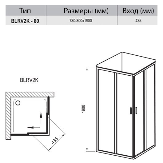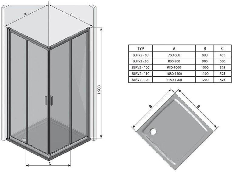 Душевая дверь для уголка Ravak Blix BLRV2K-80 1XV40C00Z1 80х80х190 профиль блестящий/стекло Transparent