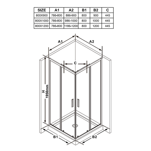 Полный уголок состоит из 4 частей: 2 неподвижных стекол и 2 раздвижных дверей с угловым входом. Благодаря роликовому механизму открывания двери надежно работают и легко снимаются, что упрощает уход за душевым уголком.