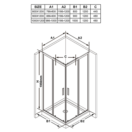 Создайте красивый квадратный или прямоугольный душевой уголок, исходя лишь из Ваших пожеланий, с помощью комбинации BLSRV2K разных размеров.