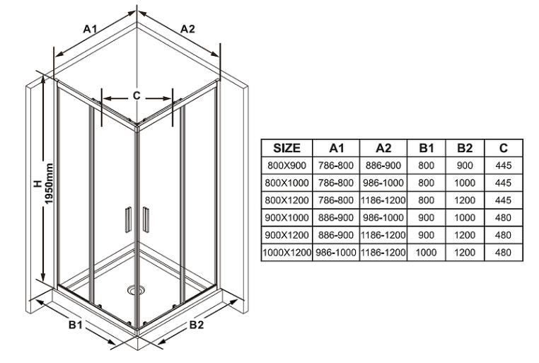 Создайте красивый квадратный или прямоугольный душевой уголок, исходя лишь из Ваших пожеланий, с помощью комбинации BLSRV2K разных размеров. В блестящем или черном цвете профиля.