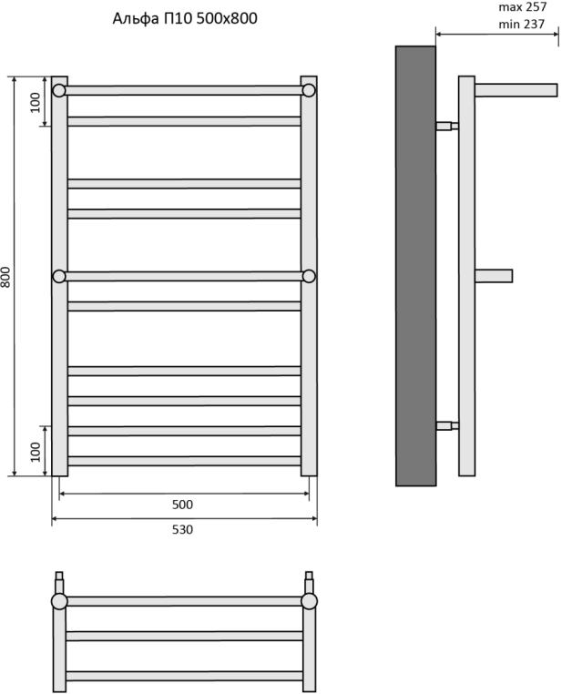 Полотенцесушитель водяной Aquatek Альфа 50x80 AQ RRP1080BL черный