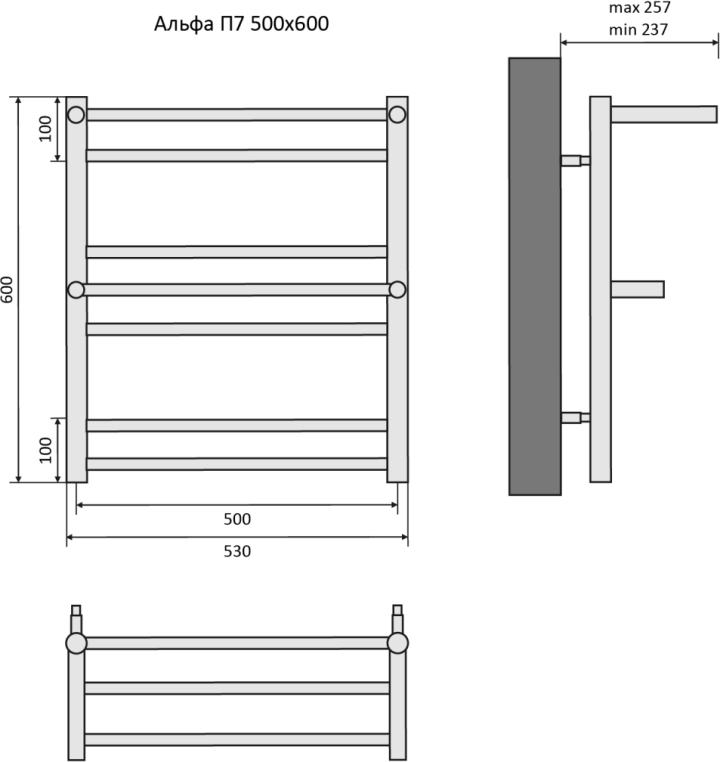 Полотенцесушитель водяной Aquatek Альфа 50x60 AQ RRP0760BL черный