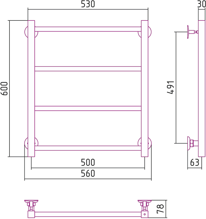 Полотенцесушитель водяной Сунержа Версия-КН 50x60 00640-6050 хром