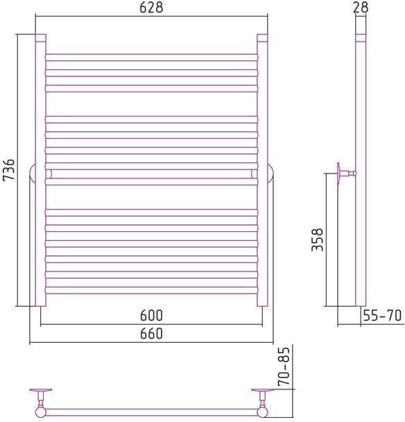 Полотенцесушитель водяной Сунержа Универсал 60x80 00653-8060 хром