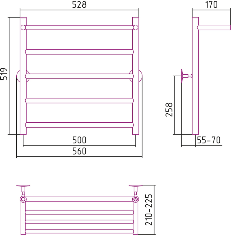 Полотенцесушитель водяной Сунержа Стилье Универсал 50x60 00654-6050 хром