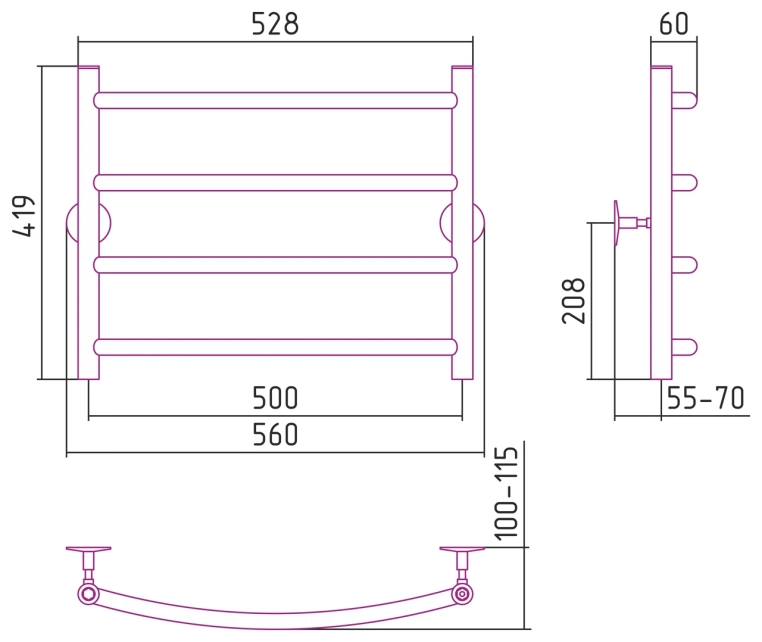 Полотенцесушитель водяной Сунержа Универсал 52x41 00650-5050 хром