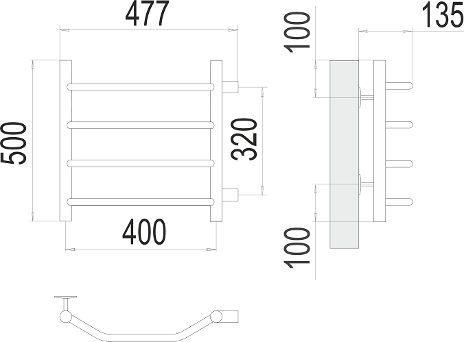 Водяной полотенцесушитель Terminus Виктория П4 400х500 с боковым подключением 320