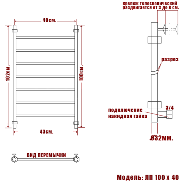 Полотенцесушитель ЛП (Лестница) - это компактный полотенцесушитель классической модели для Вашей ванной комнаты. Благодаря своей конструкции и универсальному дизайну, полотенцесушитель данного типа подходит для установки в ванных и парилках любой планировки.