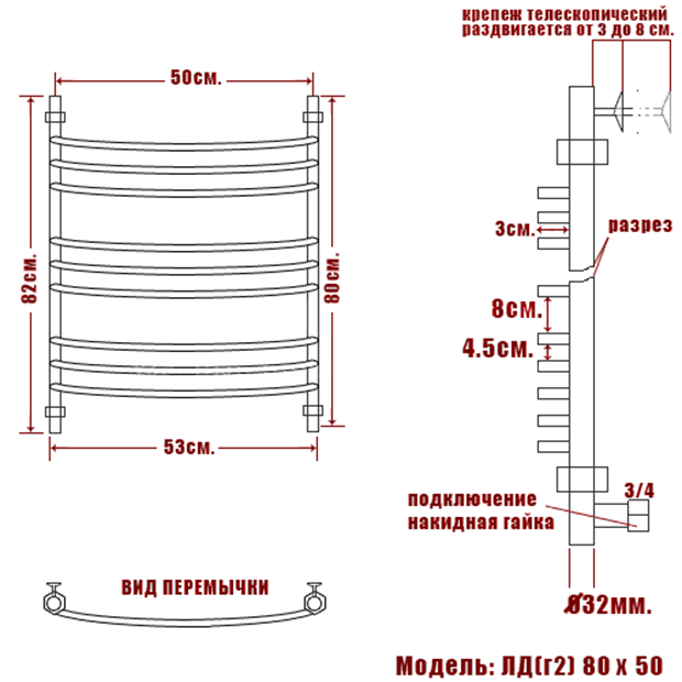 Полотенцесушитель водяной Ника ARC 53x82 ЛД Г2 80/50 хром