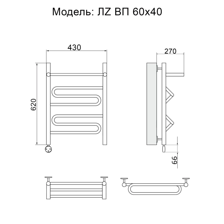 Полотенцесушитель водяной Ника CURVE 43x62 ЛЗ ВП 60/40 хром