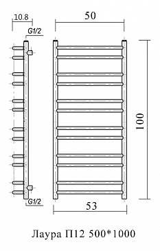 Полотенцесушитель водяной Domoterm Лаура 53x100 П12 500*1000 хром