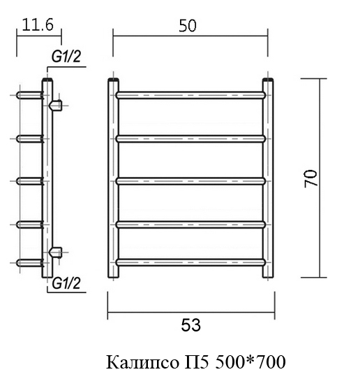 Полотенцесушитель водяной Domoterm Калипсо 52x70 П5 500*700 хром