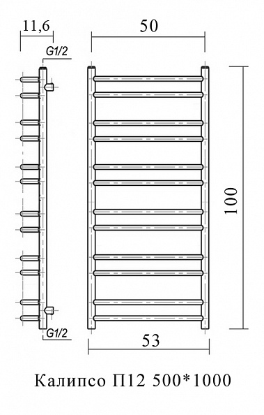 Полотенцесушитель водяной Domoterm Калипсо 52x100 П12 500*1000 хром