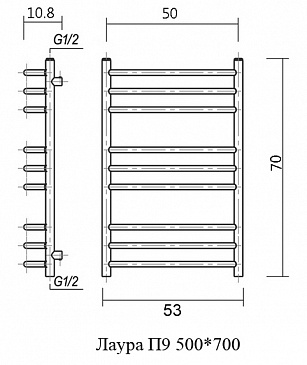 Полотенцесушитель водяной Domoterm Лаура 53x70 П9 500*700 хром
